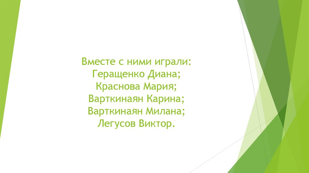 Вместе с ними играли:Геращенко Диана;
