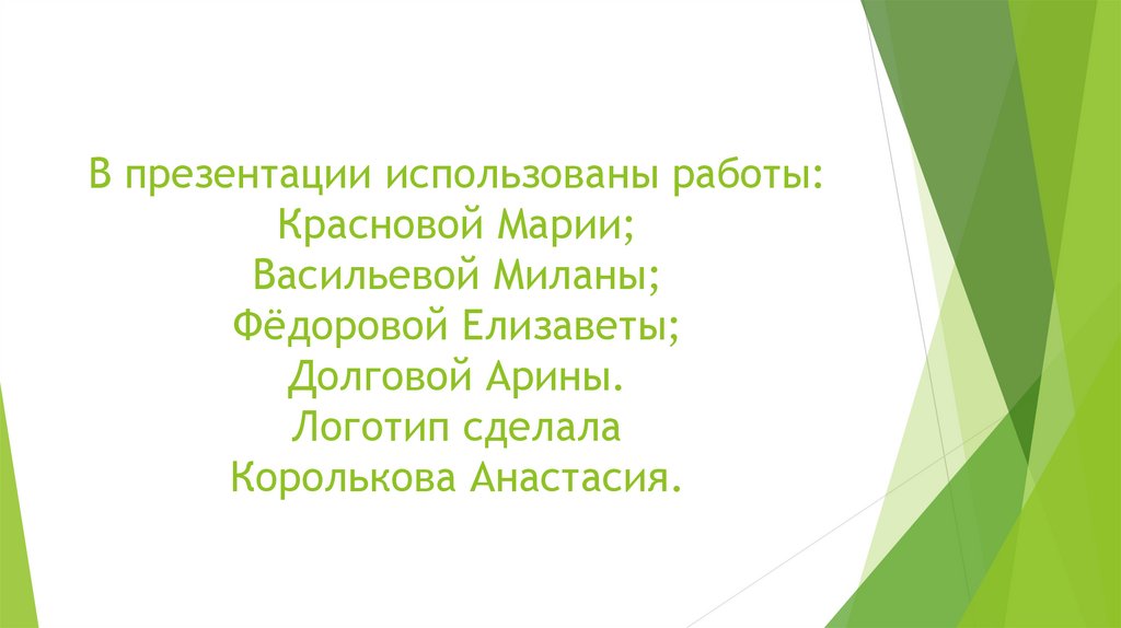 В презентации использованы работы:Красновой Марии;