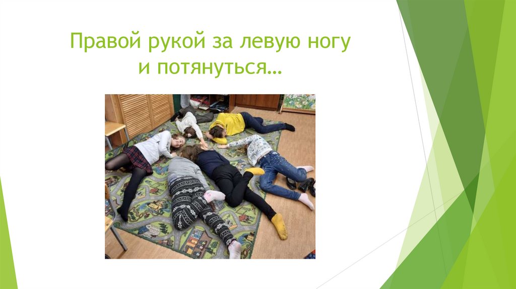 Правой рукой за левую ногуи потянуться…