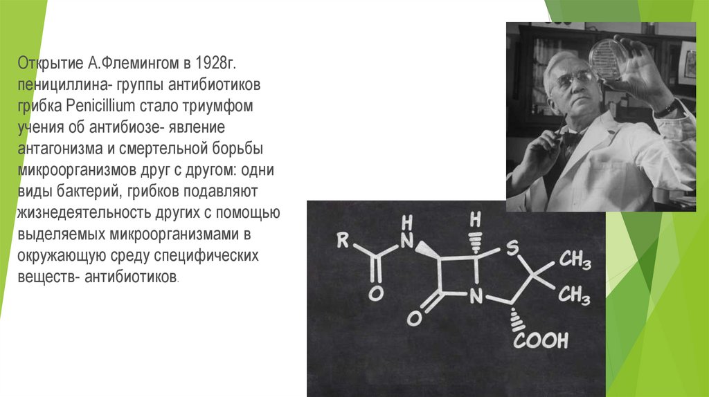 Открытие А.Флемингом в 1928г.пенициллина- группы антибиотиков