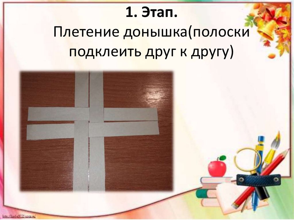 1. Этап.Плетение донышка(полоски