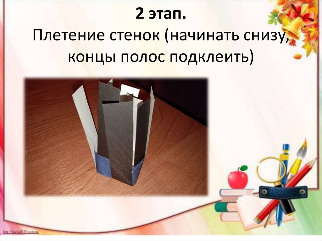 2 этап.Плетение стенок (начинать снизу,