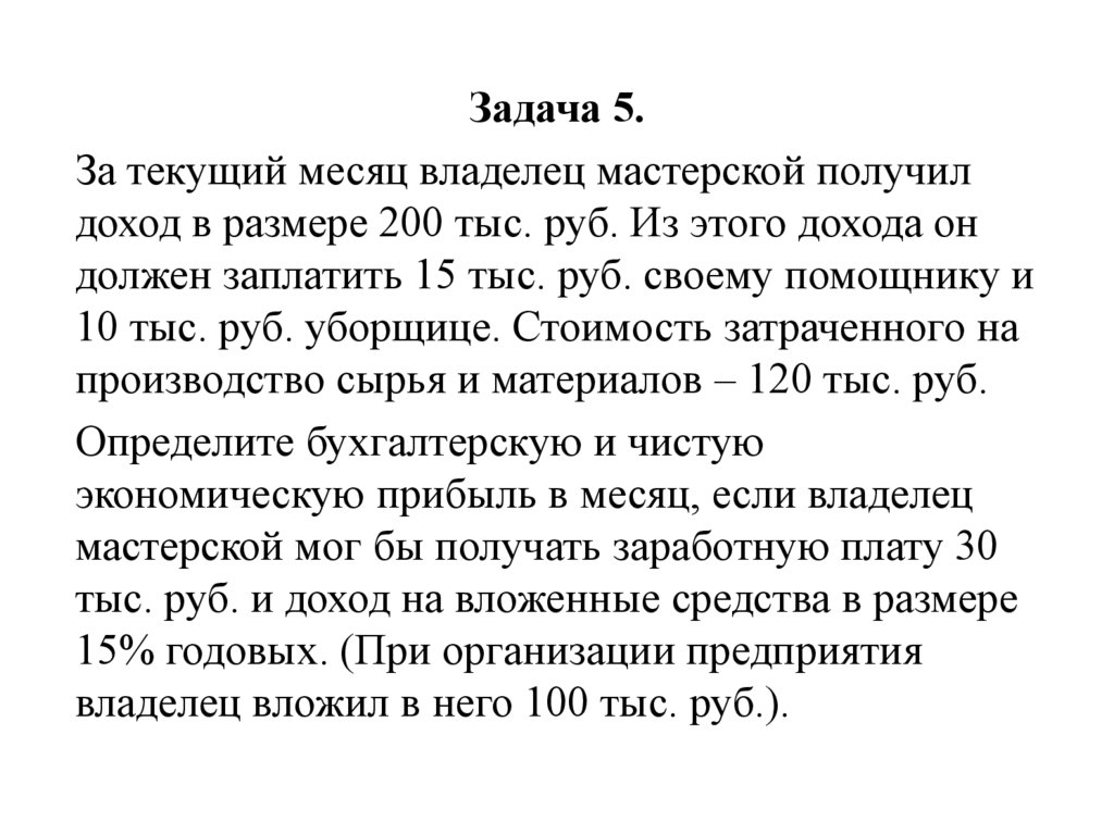 Задача 5.За текущий месяц владелец мастерской получил