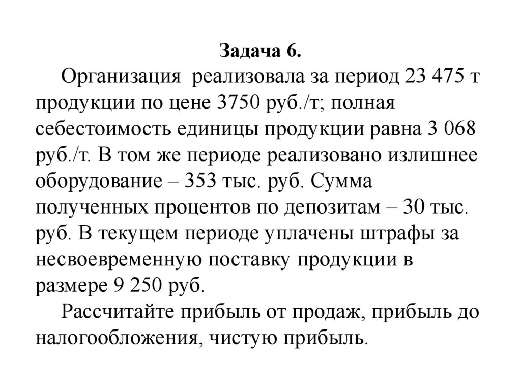 Задача 6.Организация реализовала за период 23 475 т