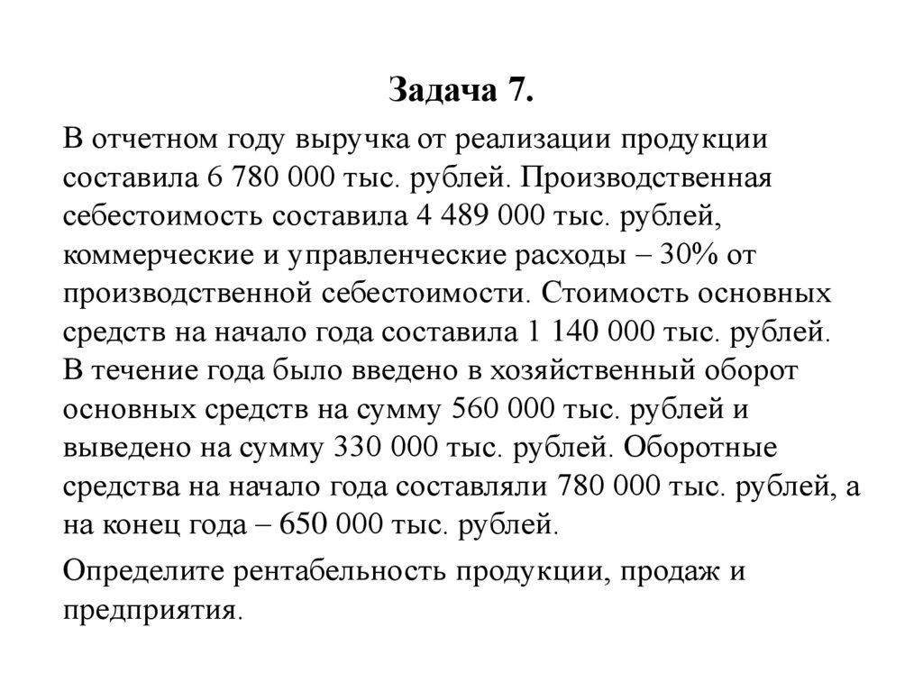 Задача 7.В отчетном году выручка от реализации продукции
