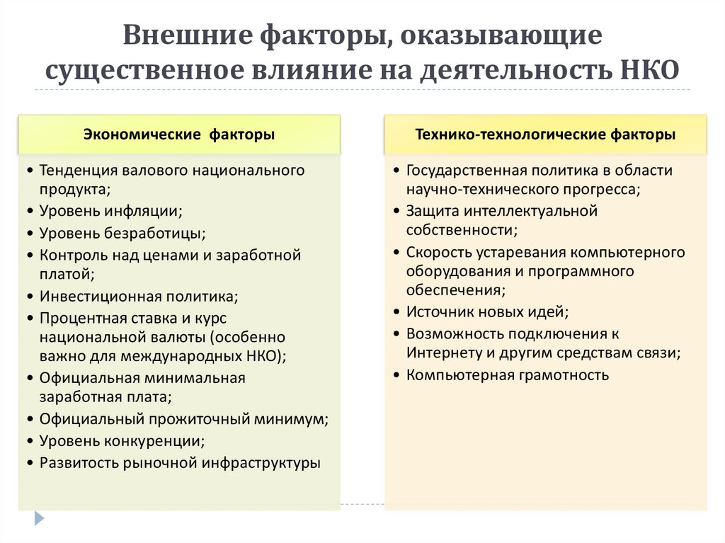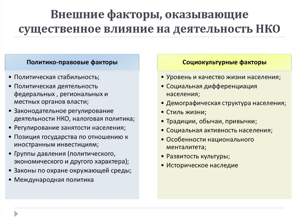 Внешние факторы, оказывающиесущественное влияние на деятельность НКО