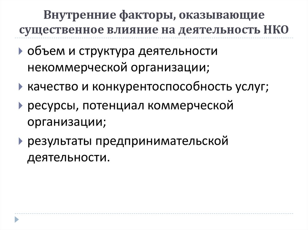 Внутренние факторы, оказывающиесущественное влияние на деятельность НКО