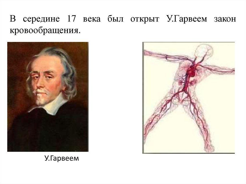 В середине 17 века был открыт У.Гарвеем законкровообращения.