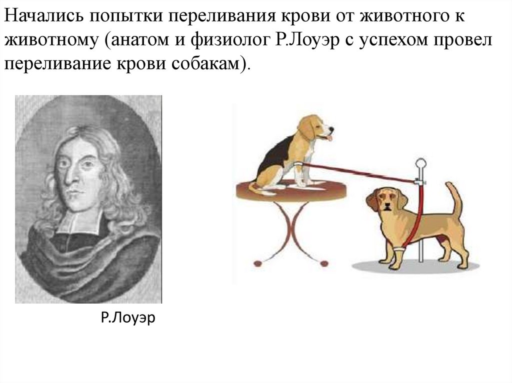переливание крови собакам).