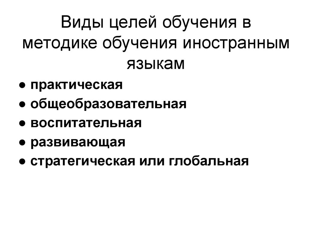 Виды целей обучения вметодике обучения иностранным
