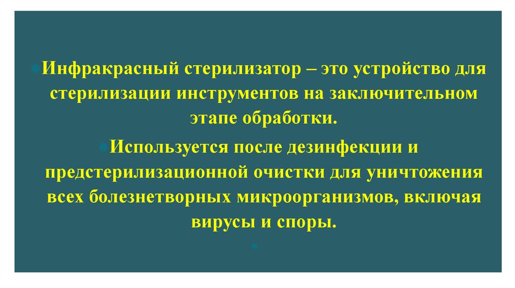 ●Инфракрасный стерилизатор – это устройство длястерилизации инструментов на заключительном