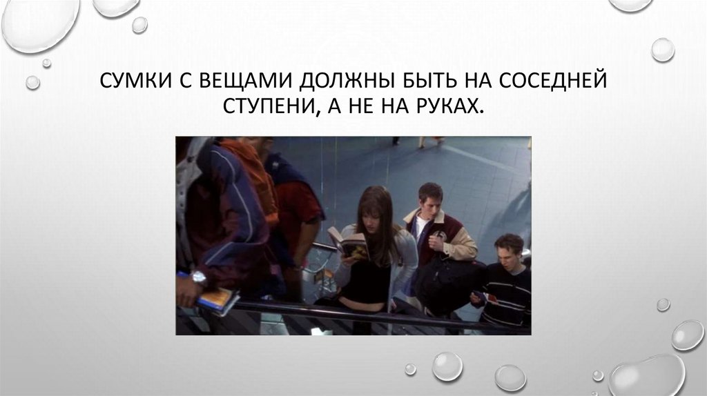 СУМКИ С ВЕЩАМИ ДОЛЖНЫ БЫТЬ НА СОСЕДНЕЙСТУПЕНИ, А НЕ НА РУКАХ.