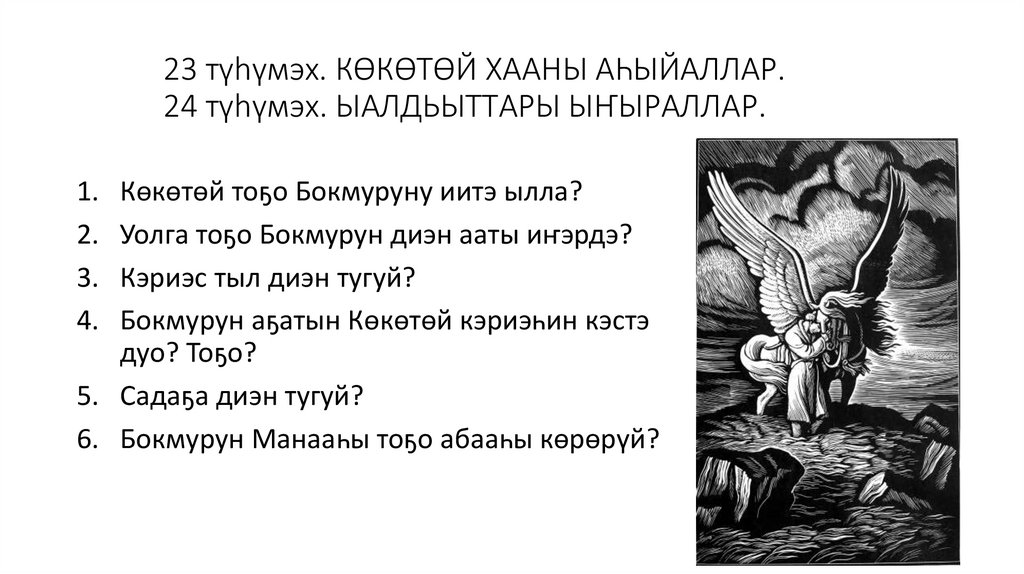 23 түһүмэх. КӨКӨТӨЙ ХААНЫ АҺЫЙАЛЛАР.24 түһүмэх. ЫАЛДЬЫТТАРЫ ЫҤЫРАЛЛАР.