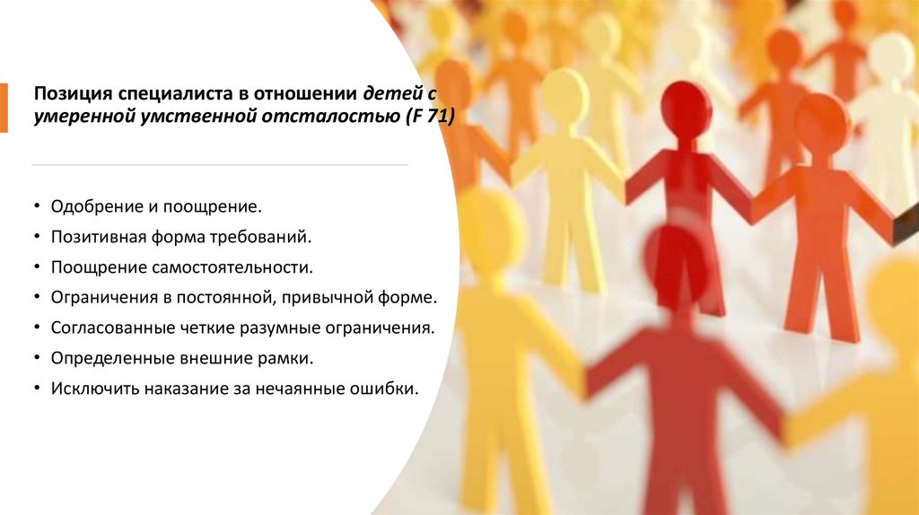 Позиция специалиста в отношении детей сумеренной умственной отсталостью (F 71)