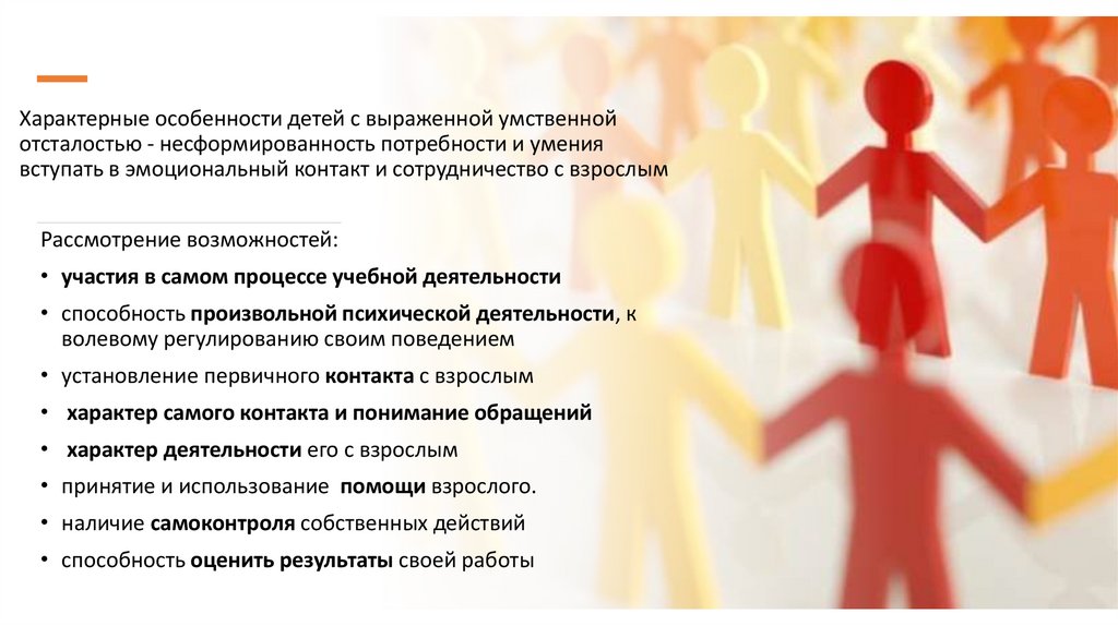 Характерные особенности детей с выраженной умственнойотсталостью - несформированность потребности и умения