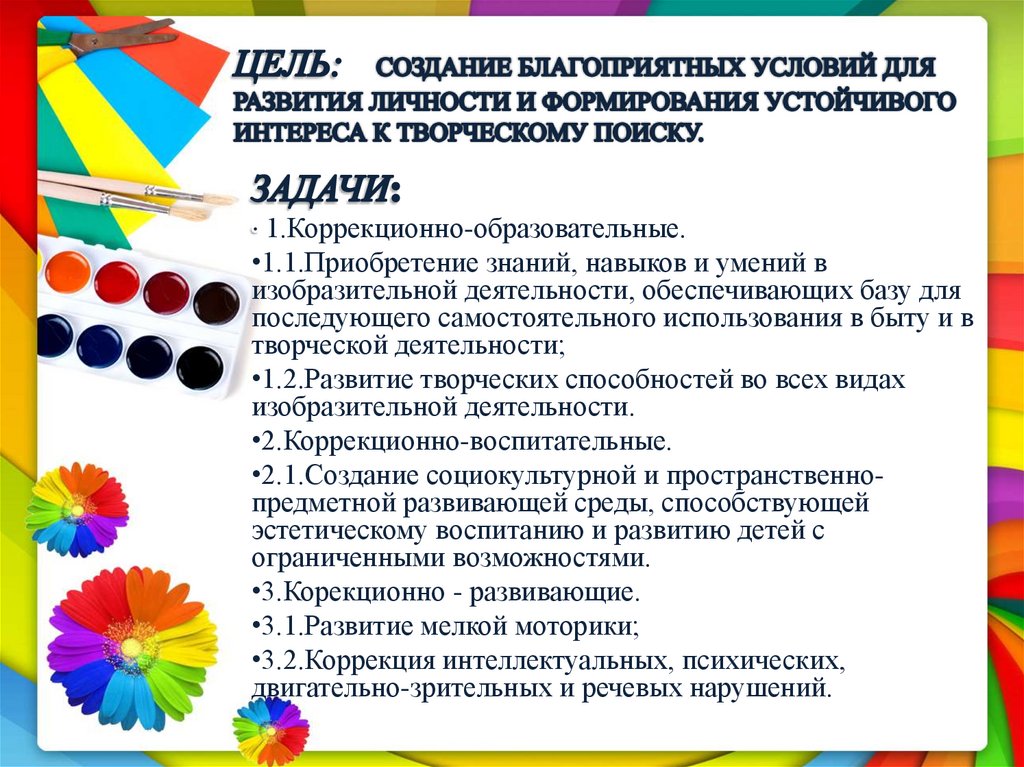 1.Коррекционно-образовательные.•1.1.Приобретение знаний, навыков и умений в