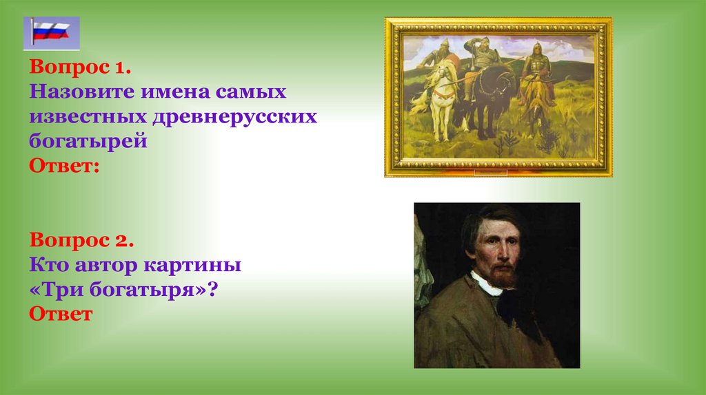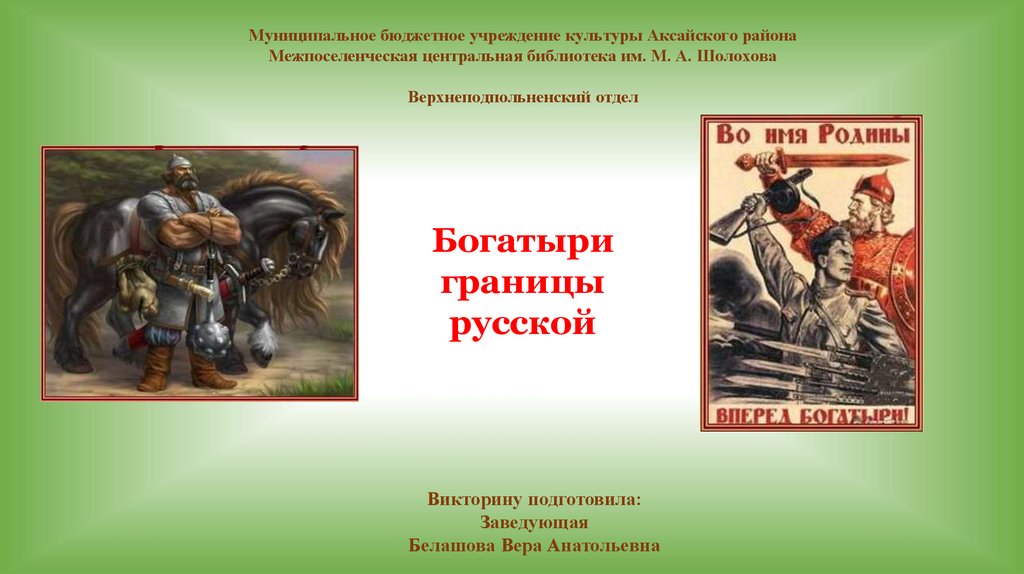 А для юных знатоков мы предлагаем викторину «Богатыри границы русской».