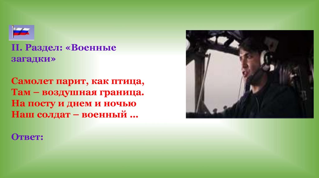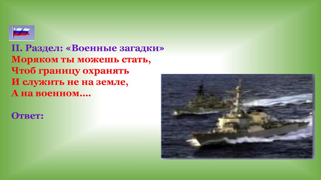 II. Раздел: «Военные загадки»Моряком ты можешь стать,