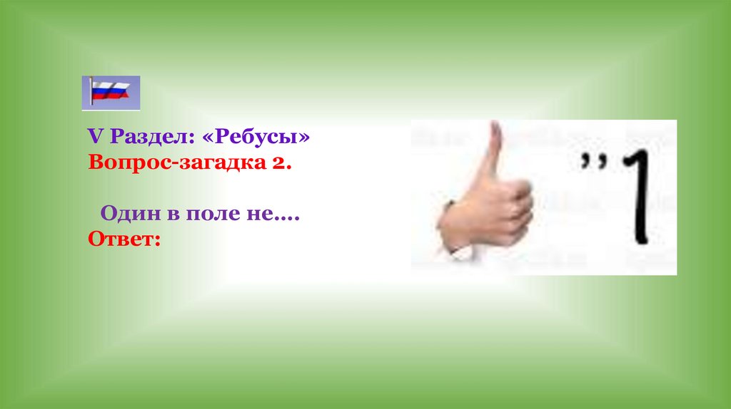 V Раздел: «Ребусы»Вопрос-загадка 2.