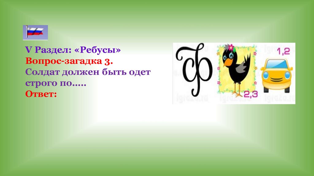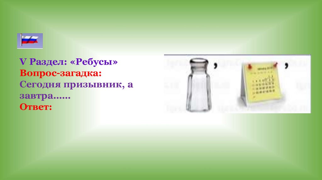 V Раздел: «Ребусы»Вопрос-загадка 3.