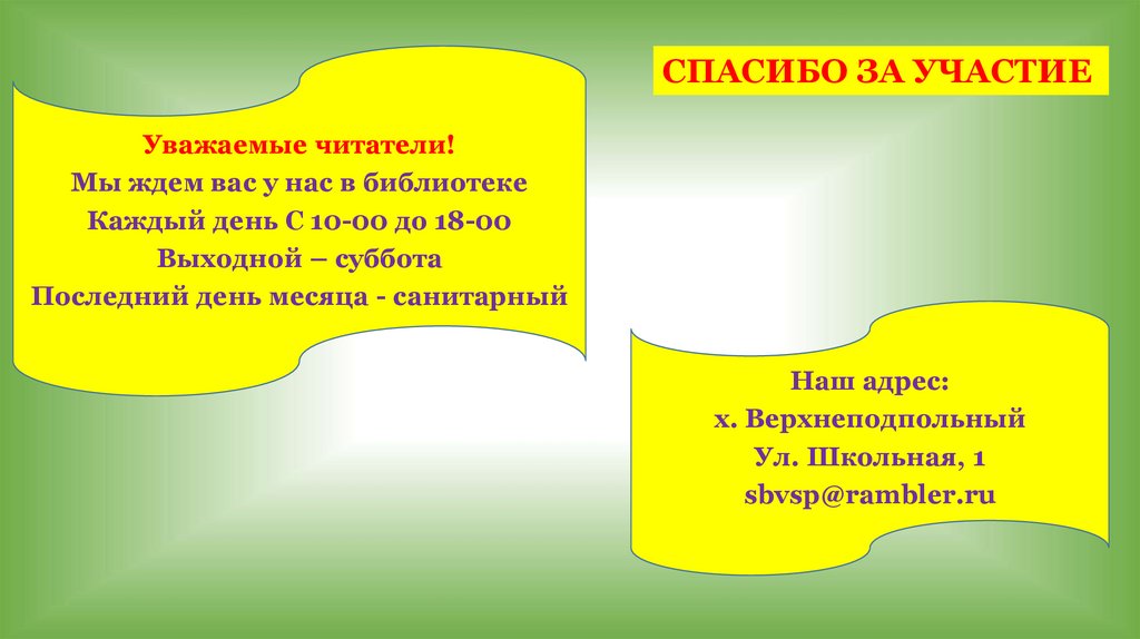 СПАСИБО ЗА УЧАСТИЕУважаемые читатели!