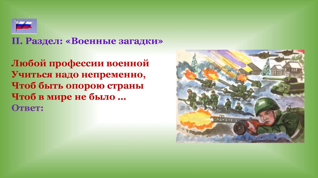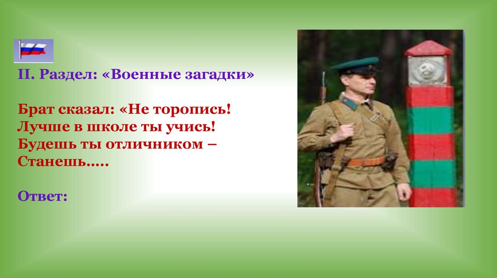 II. Раздел: «Военные загадки»Брат сказал: «Не торопись!