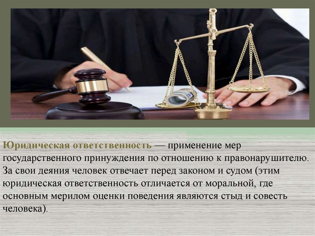 Юридическая ответственность — применение мергосударственного принуждения по отношению к правонарушителю.