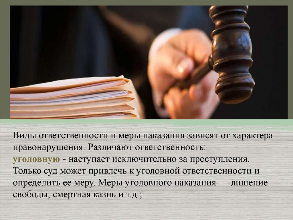 Виды ответственности и меры наказания зависят от характераправонарушения. Различают ответственность: