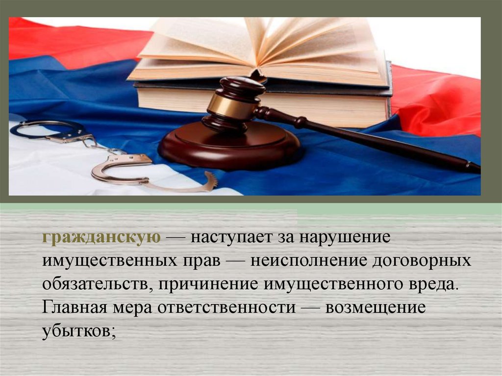 гражданскую — наступает за нарушениеимущественных прав — неисполнение договорных