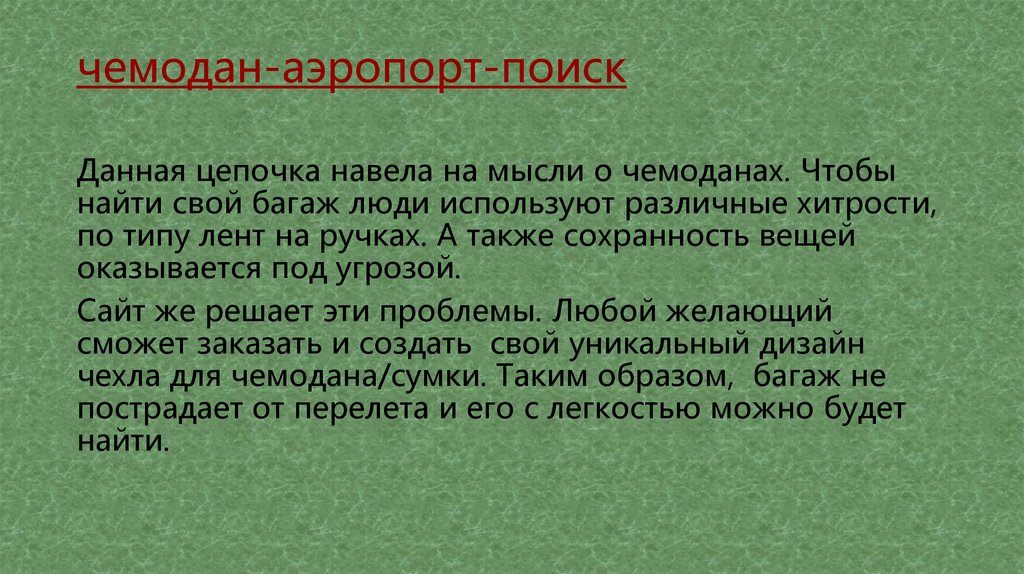чемодан-аэропорт-поискДанная цепочка навела на мысли о чемоданах. Чтобы