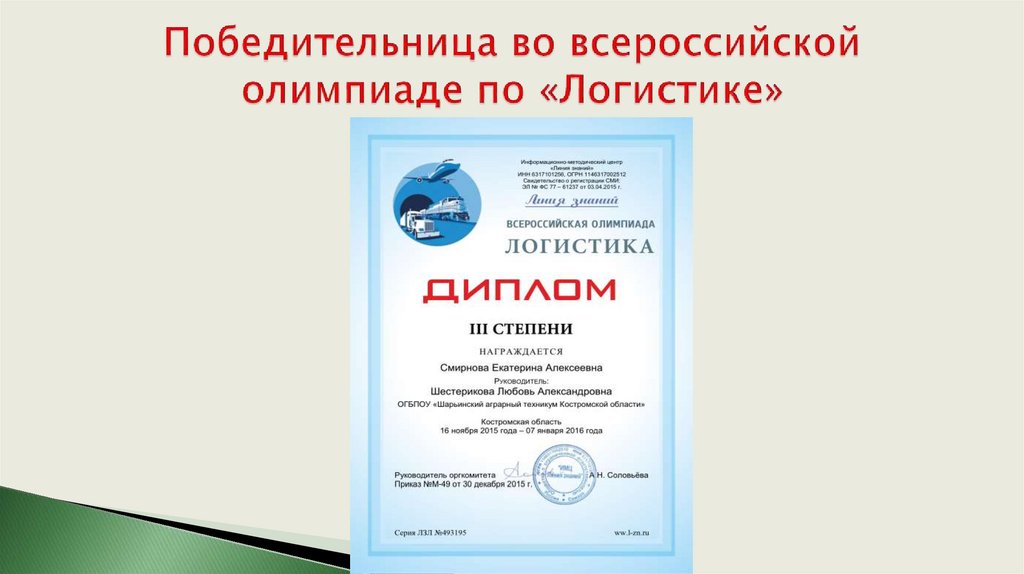 Кудряшова Яна Владимировна – лауреатстипендии С.И. Штеймана