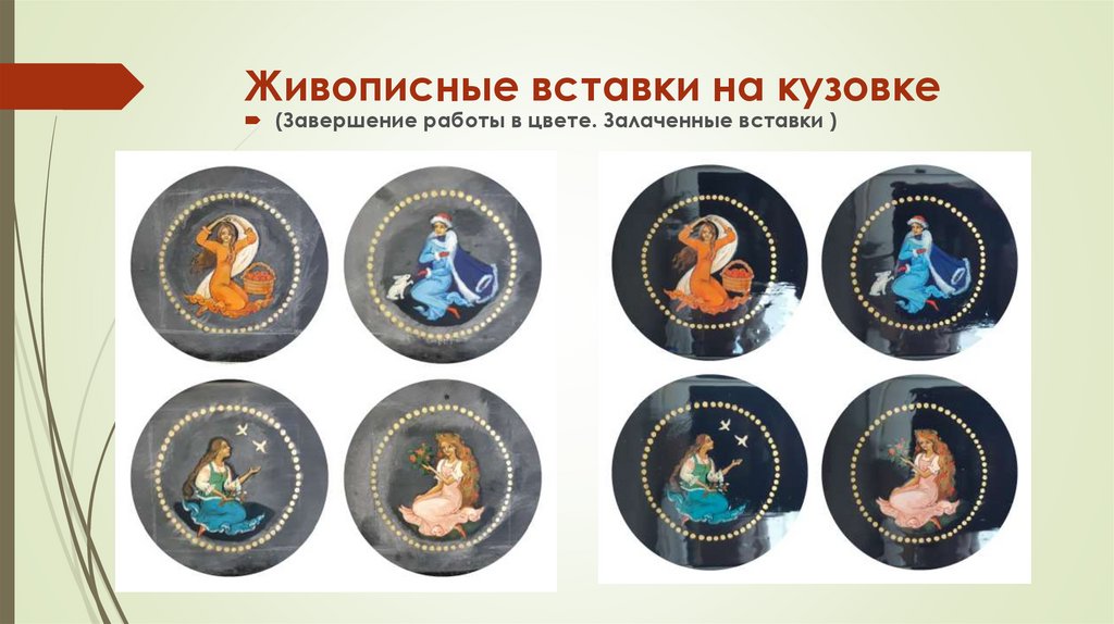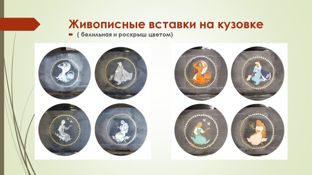 Живописные вставки на кузовке(Завершение работы в цвете. Залаченные вставки )