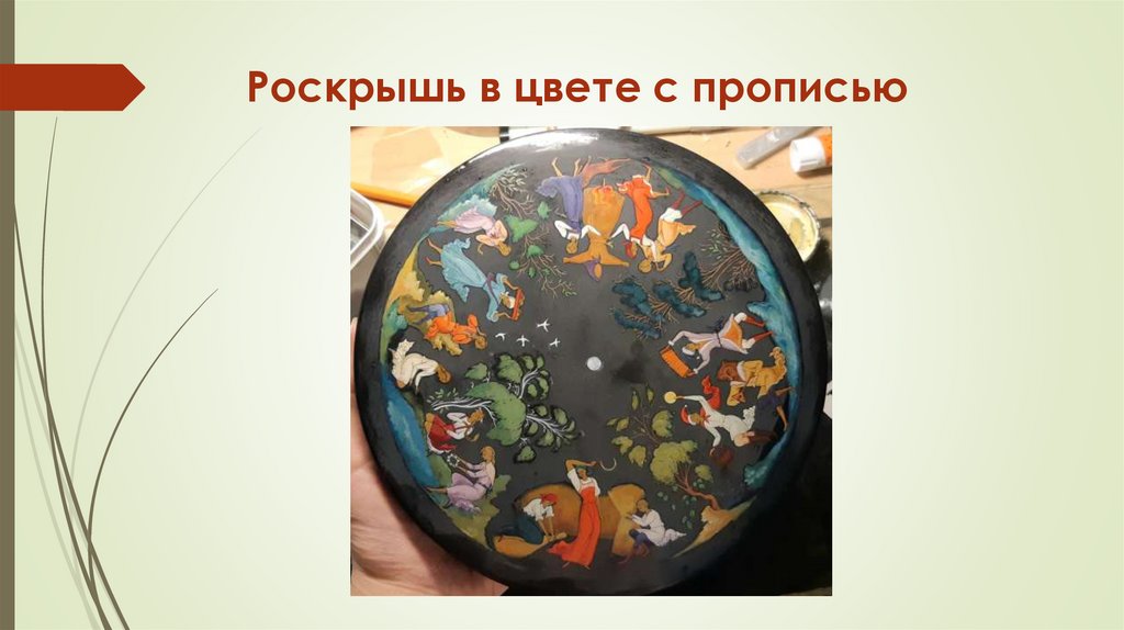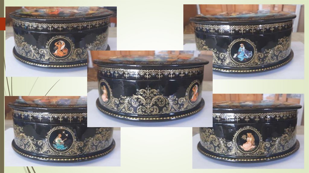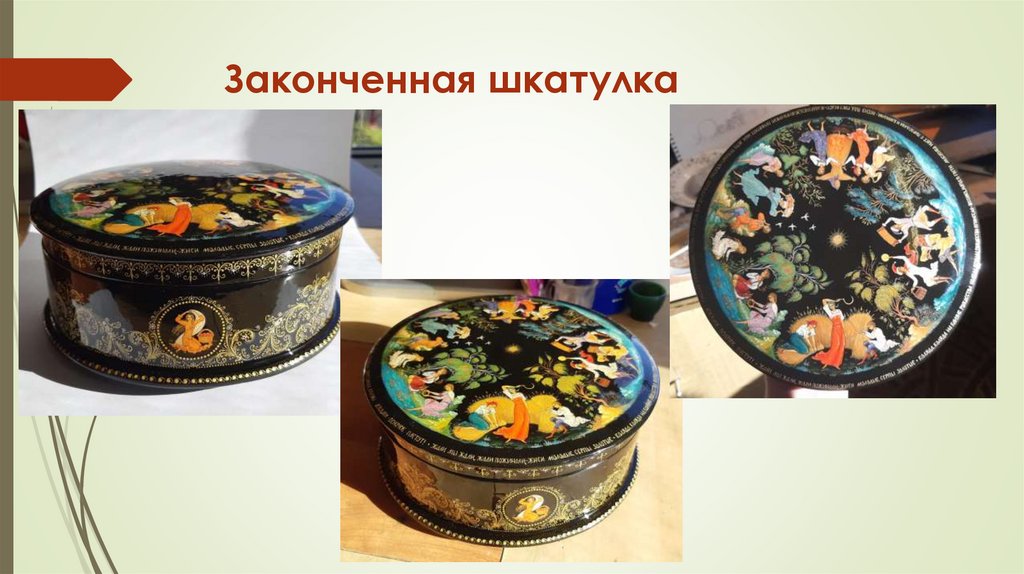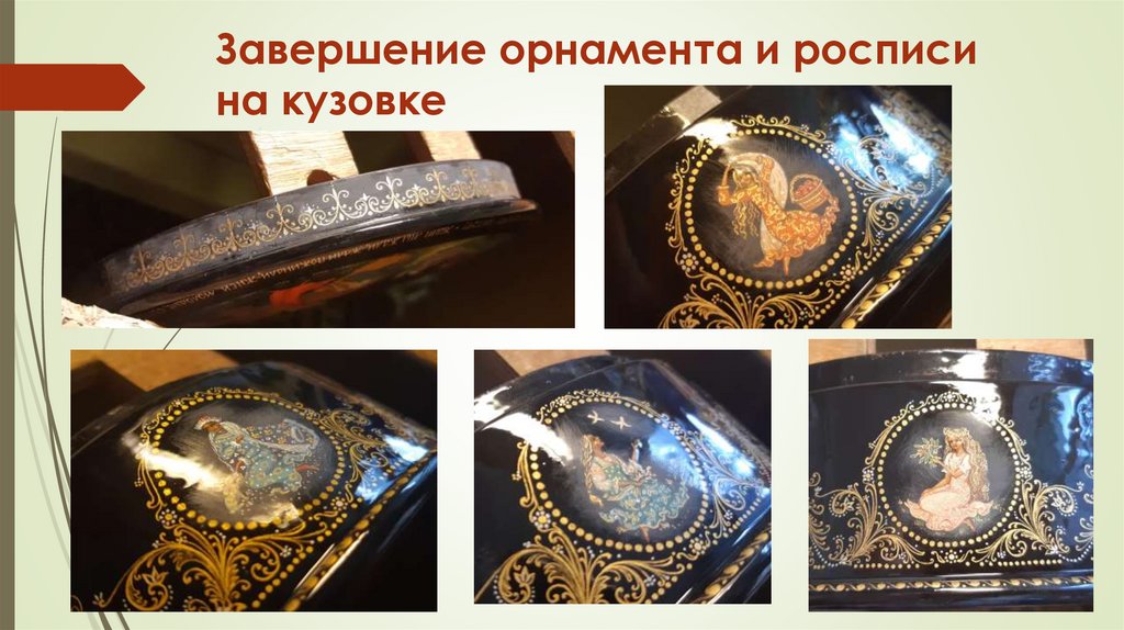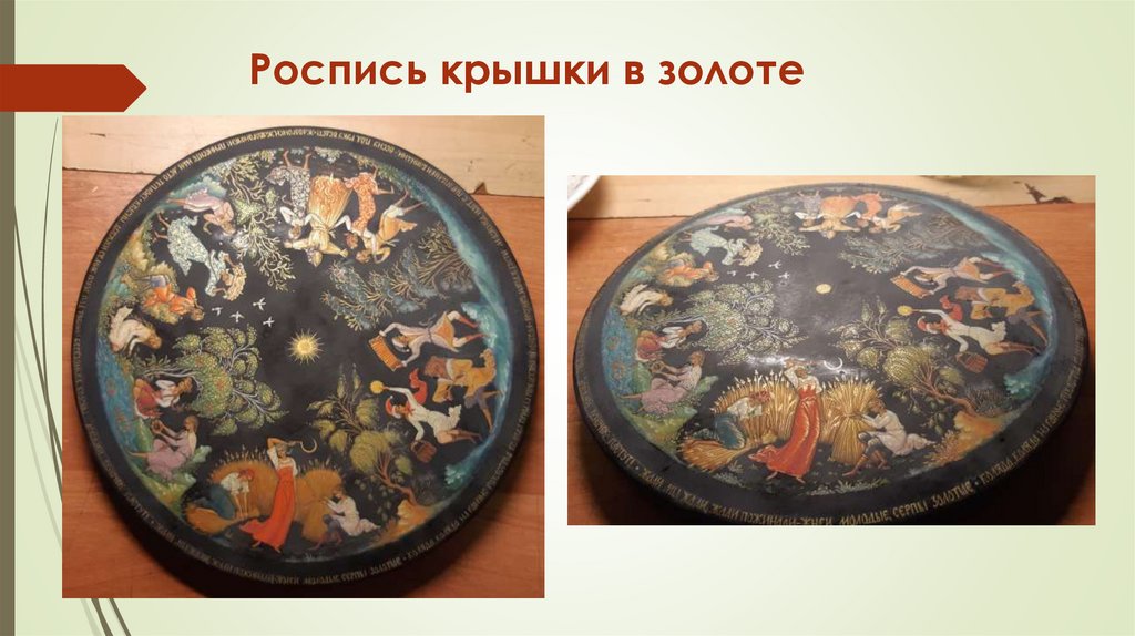 Завершение работы в золоте( крышка шкатулки при разном освещении)