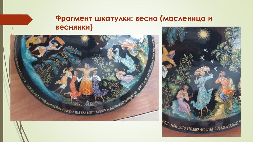 Фрагмент шкатулки: весна (масленица ивеснянки)