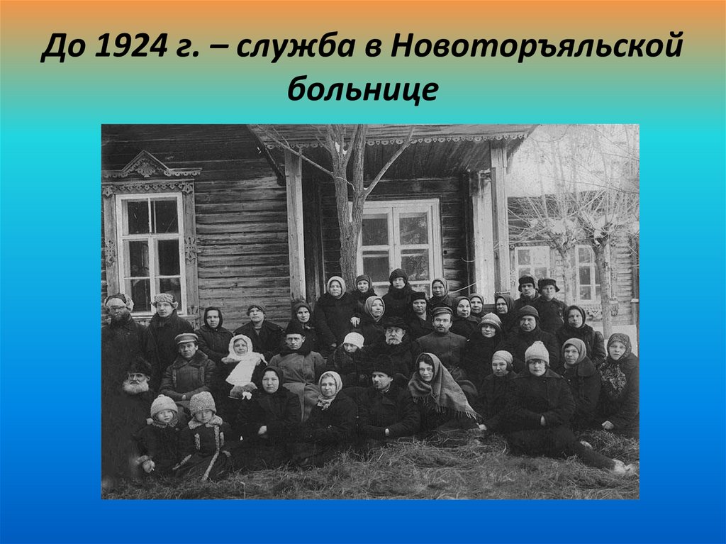 До 1924 г. – служба в Новоторъяльскойбольнице