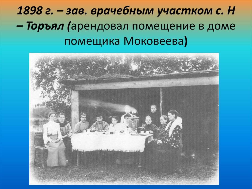 1898 г. – зав. врачебным участком с. Н– Торъял (арендовал помещение в доме