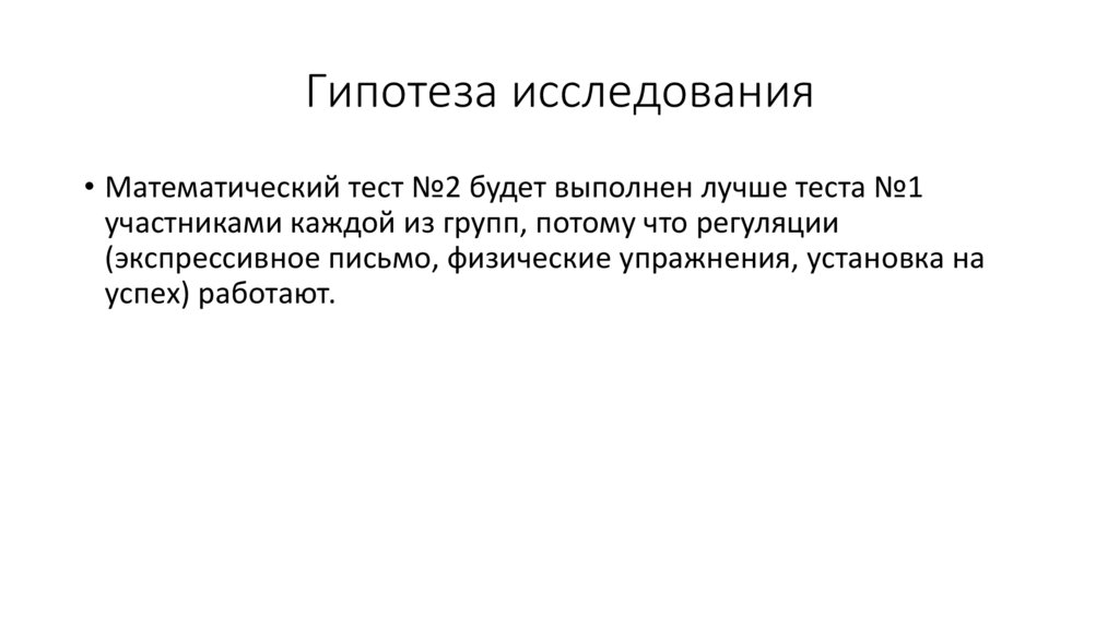 Гипотеза исследования• Математический тест №2 будет выполнен лучше теста №1