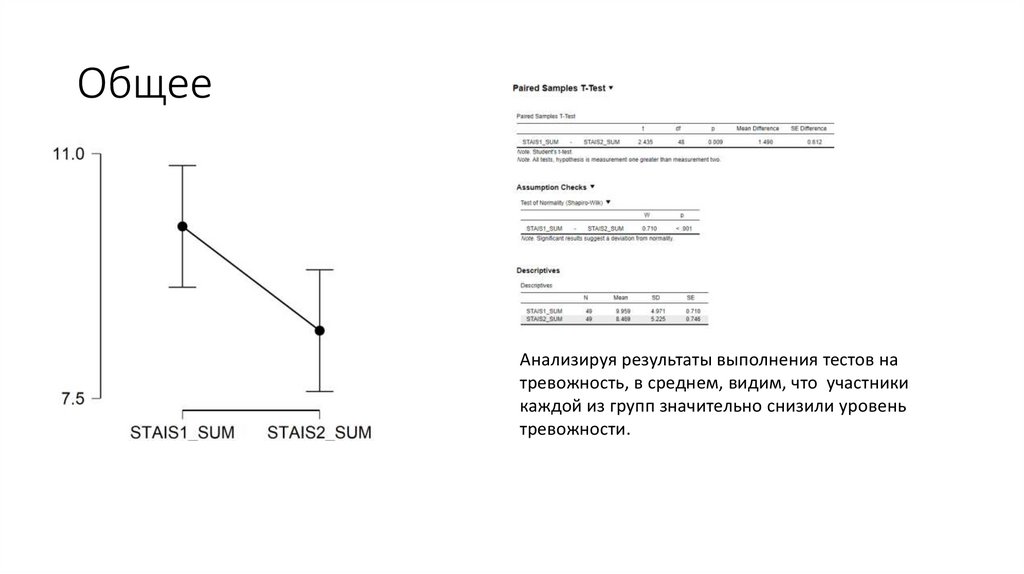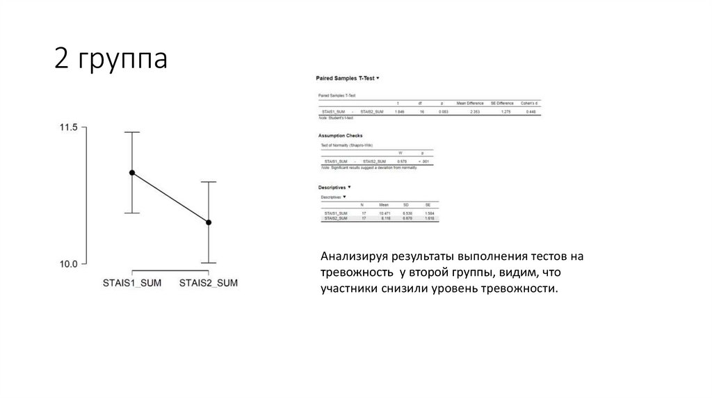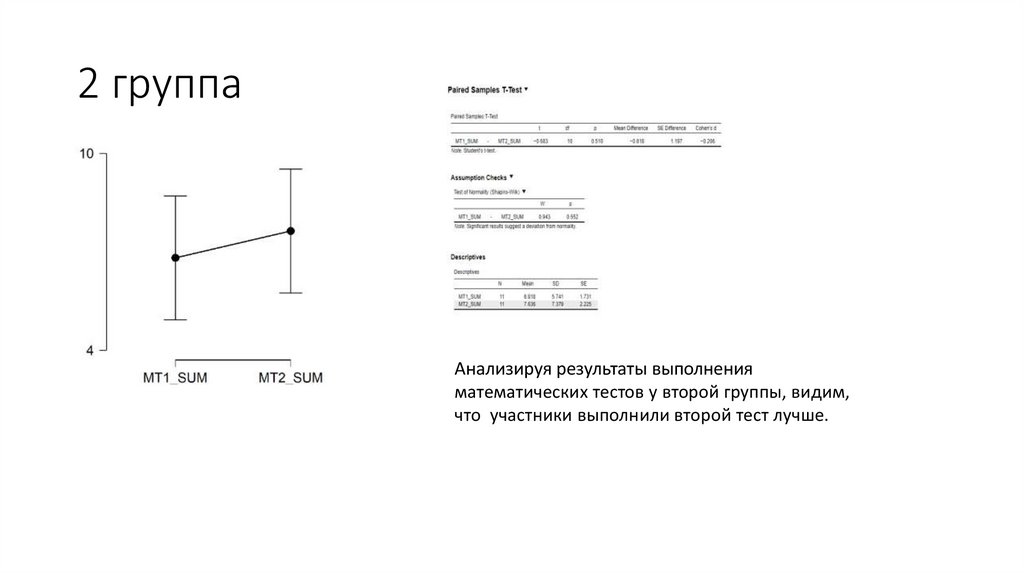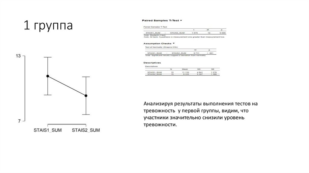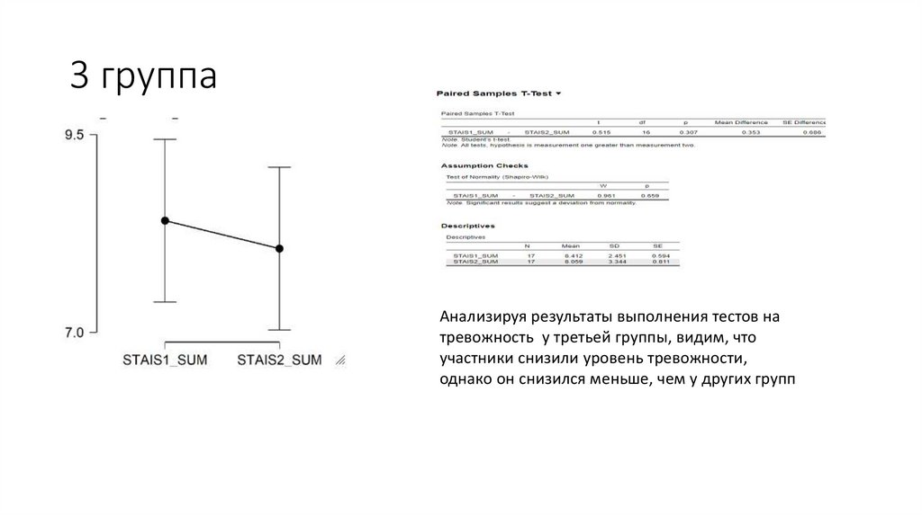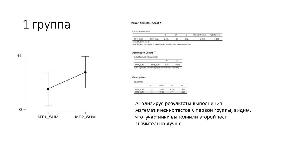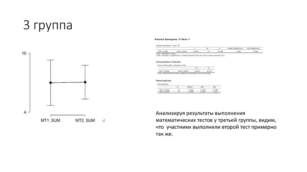 Результаты тестов каждой из группАнализируя результаты тестов каждой из групп,