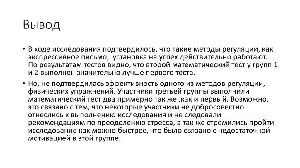 Вывод• В ходе исследования подтвердилось, что такие методы регуляции, как