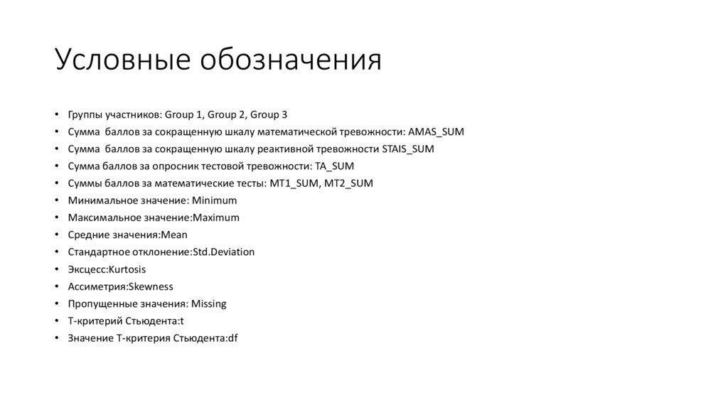 Условные обозначения• Группы участников: Group 1, Group 2, Group 3