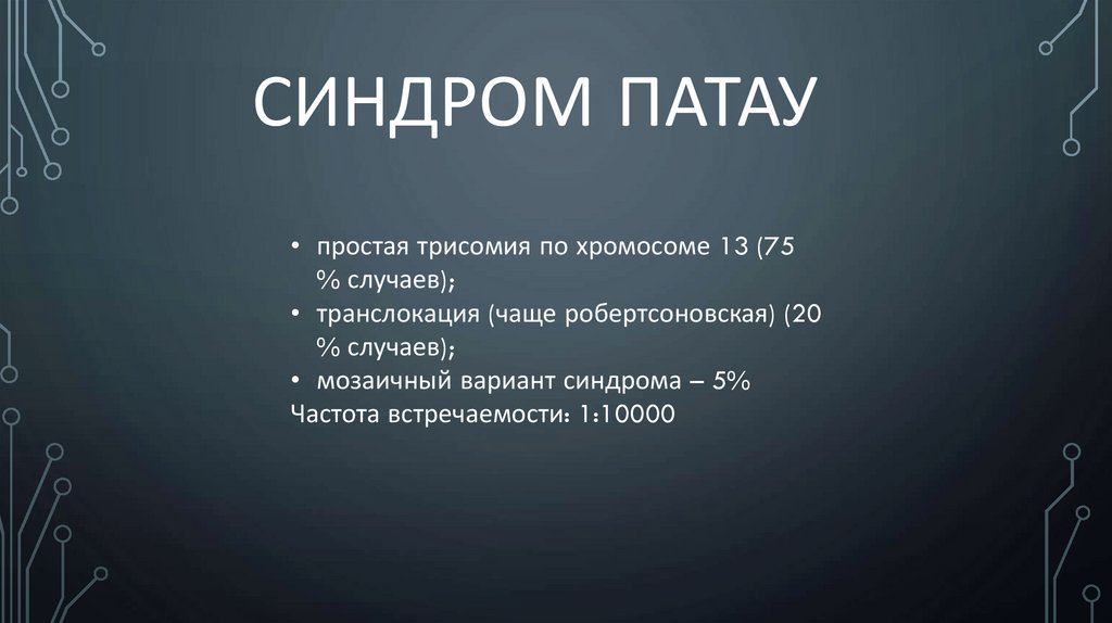 СИНДРОМ ПАТАУ• простая трисомия по хромосоме 13 (75