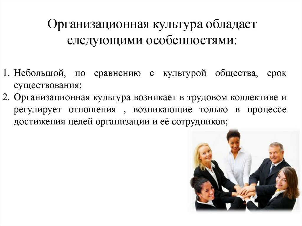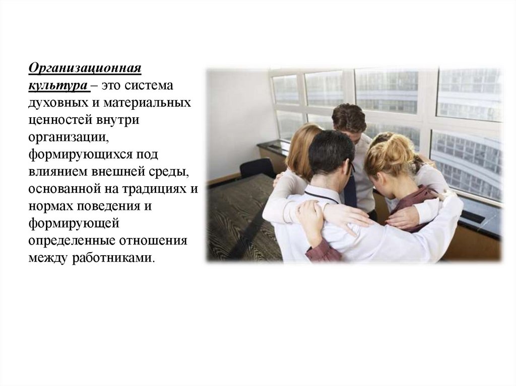 Организационная культура регулирует всеотношения людей в данном сообществе, а с