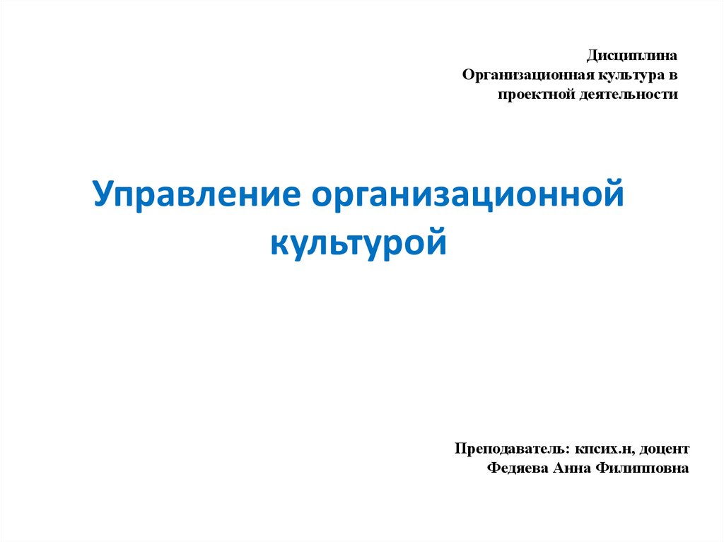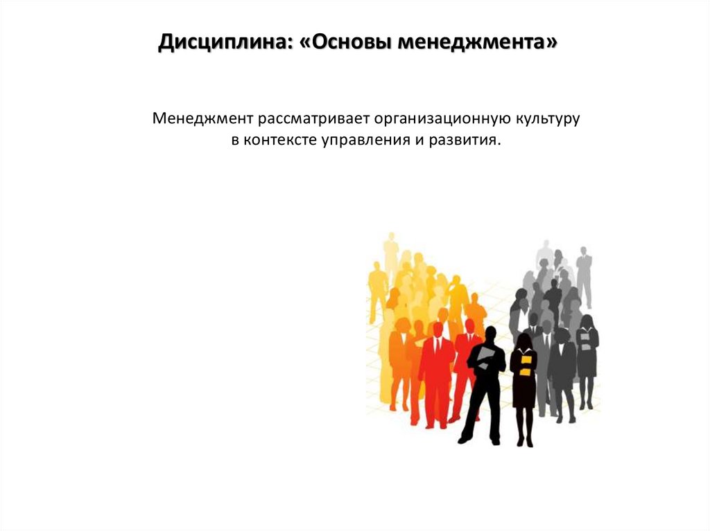 Дисциплина: «Основы менеджмента»Менеджмент рассматривает организационную культуру