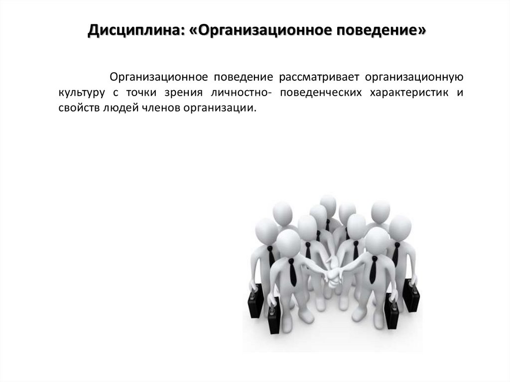 Дисциплина: «Организационное поведение»Организационное поведение рассматривает организационную