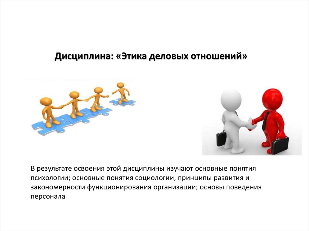 Дисциплина: «Этика деловых отношений»В результате освоения этой дисциплины изучают основные понятия
