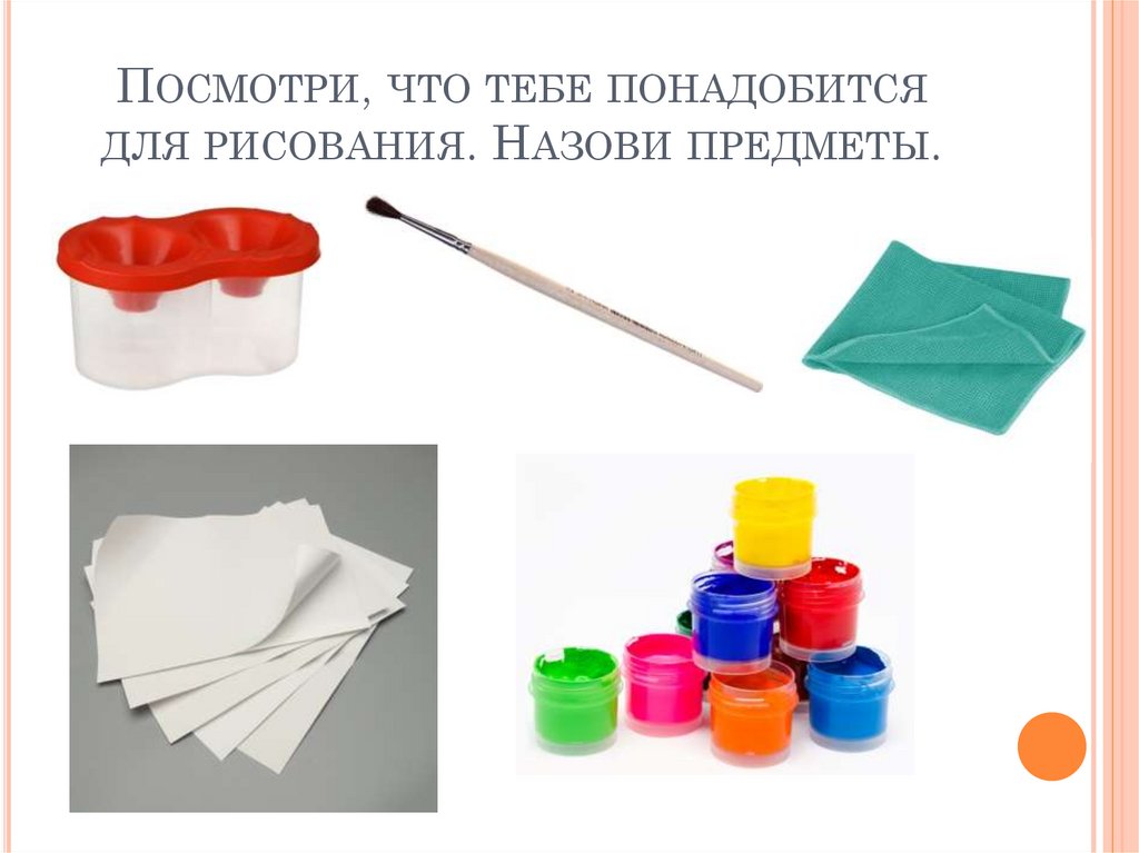 ПОСМОТРИ, ЧТО ТЕБЕ ПОНАДОБИТСЯДЛЯ РИСОВАНИЯ. НАЗОВИ ПРЕДМЕТЫ.