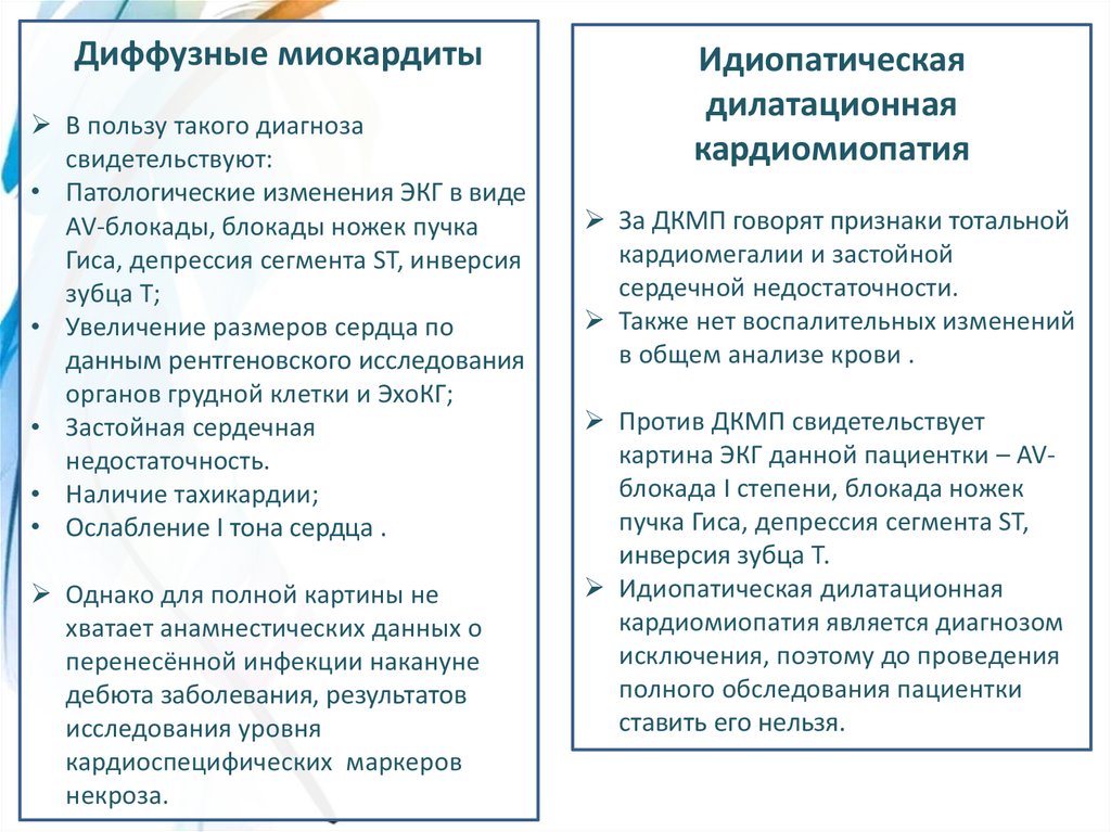 Диффузные миокардитыВ пользу такого диагноза