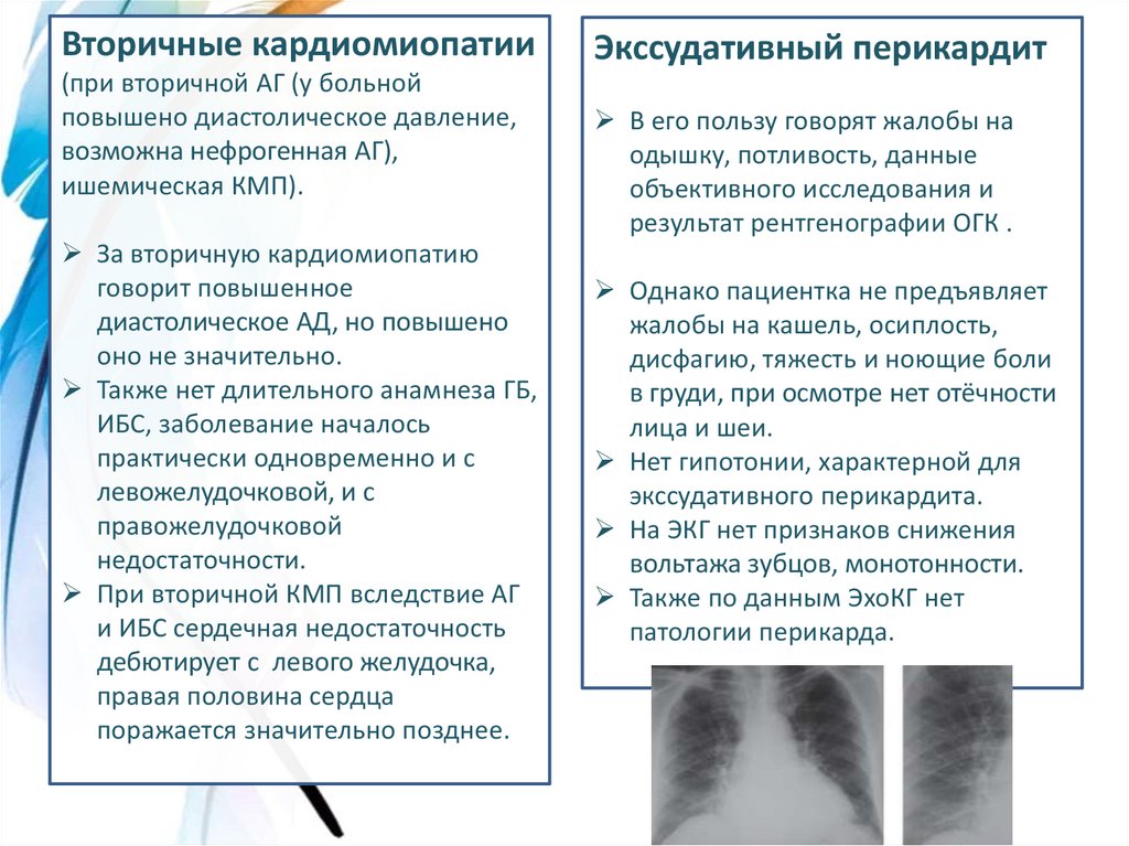 Вторичные кардиомиопатии(при вторичной АГ (у больной
