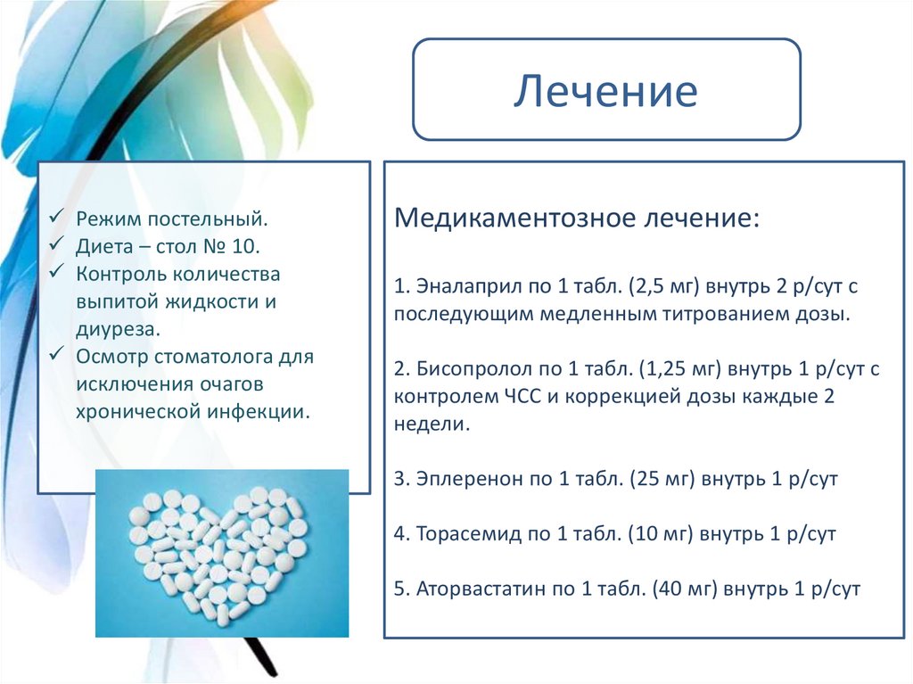 1. Эналаприл по 1 табл. (2,5 мг) внутрь 2 р/сут с