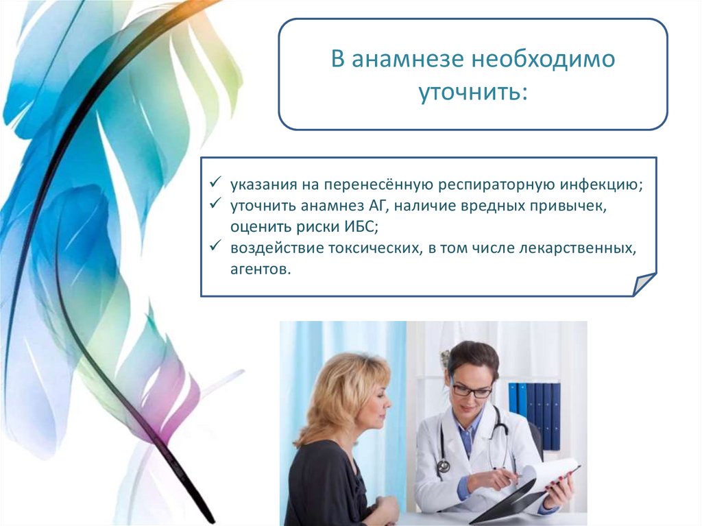 уточнить анамнез АГ, наличие вредных привычек,
